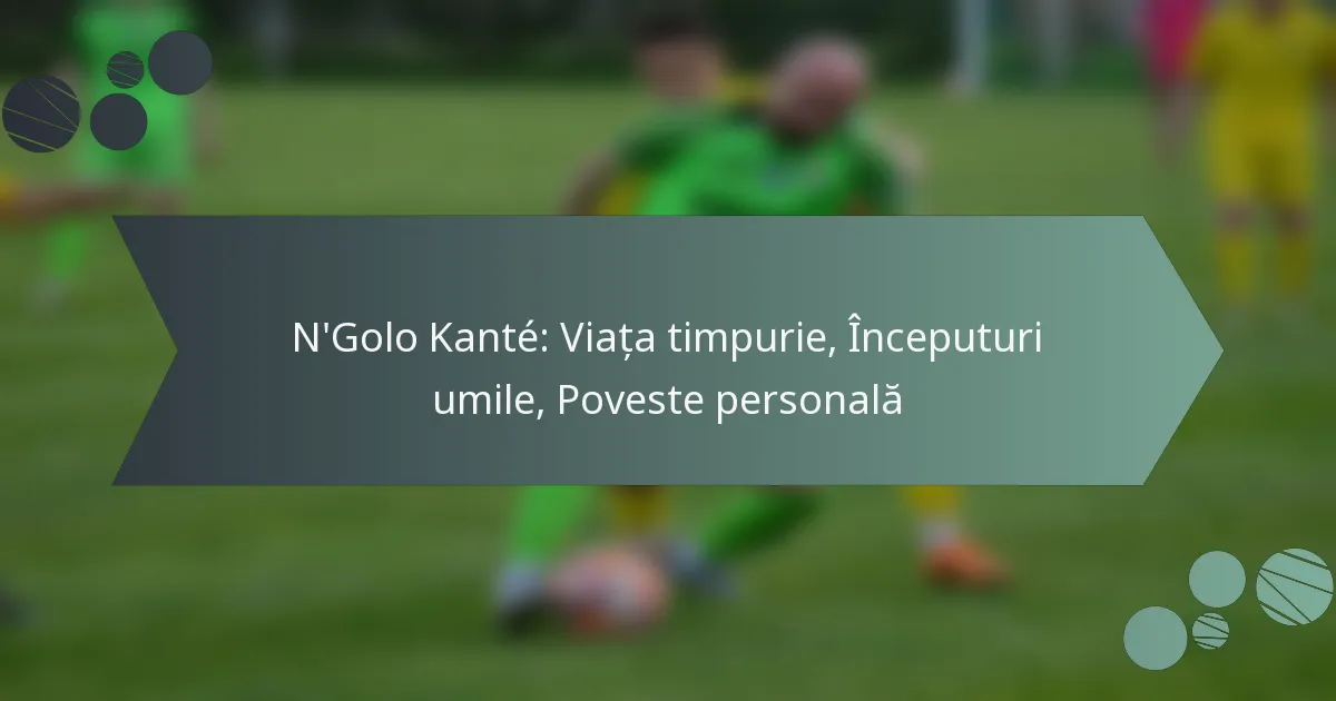 Viața timpurie a lui N’Golo Kanté este o dovadă a începuturilor sale umile în Franța, unde a fost crescut într-o familie susținătoare care a pus accent pe valori puternice. Călătoria sa pentru a deveni un fotbalist celebru este definită de provocările întâmpinate și de reziliența dezvoltată, reflectând un angajament profund față de comunitatea sa și o etică a muncii remarcabilă.